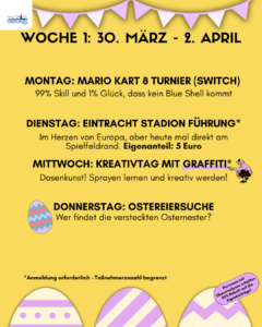 Wir bieten jede Ferien ein buntes Programm. Inhalt und Anmeldung finden sich zur gegeben Zeit direkt hier auf der Startseite.