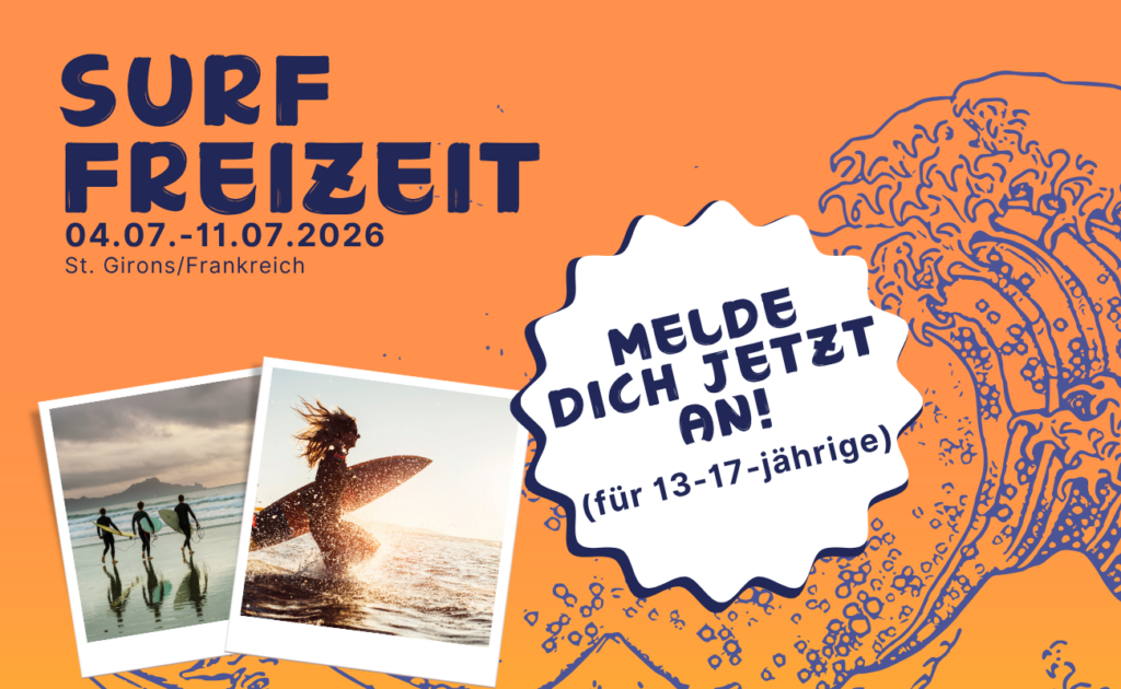 Auch dieses Jahr fahren wir in den Sommerferien nach Frankreich zum Surfen! Du bist zwischen 13-17 Jahren und hast Bock auf Urlaub ohne Eltern? Dann melde Dich jetzt an!